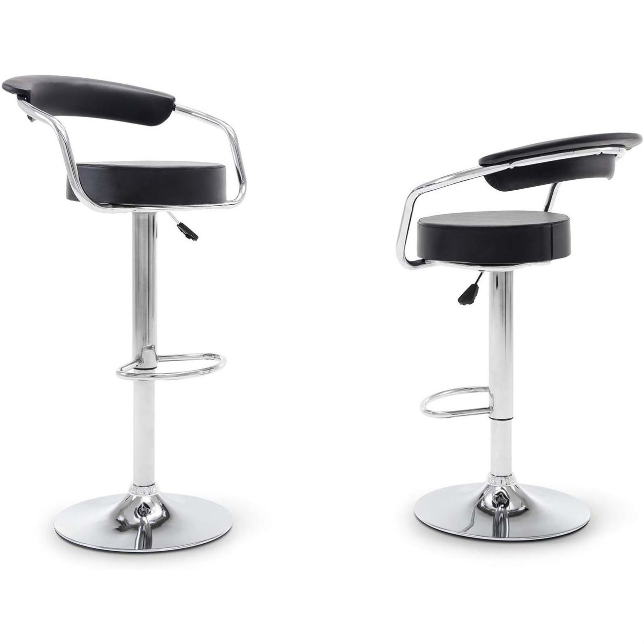 Set of 2 Modern Bar Stools with Black Faux Leather Round Seat with Footrest Set of 2 Modern Bar Stools with Black Faux Leather Round Seat with Footrest