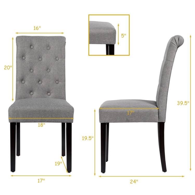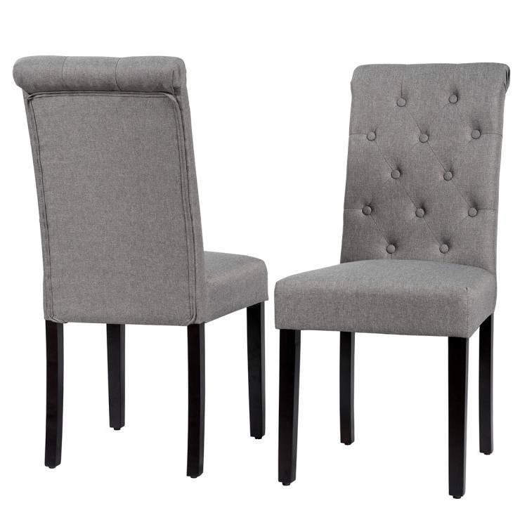 Home > Set of 2 Grey Linen Button Tufted Dining Chair with Wood Legs
