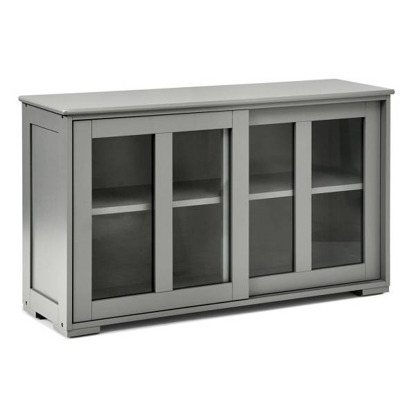 Grey Wood Buffet Kitchen Dining Sideboard Storage Cabinet w/ Glass Sliding Door