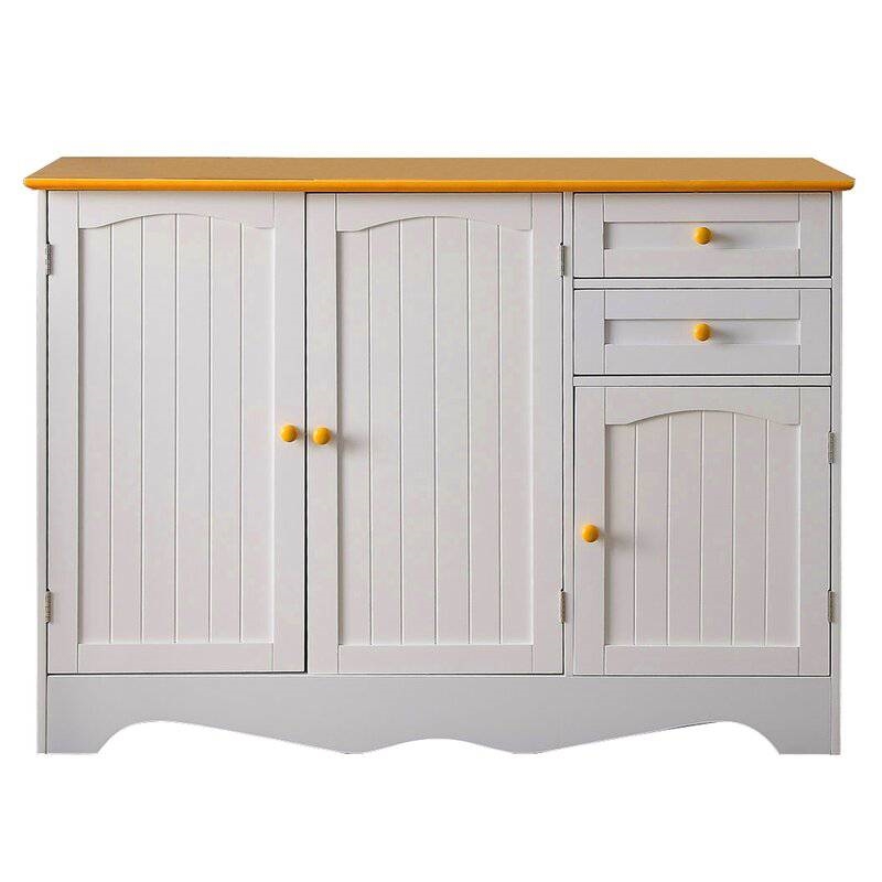 Home > White Sideboard Buffet Cabinet with Light Wood Finish Top and Knobs