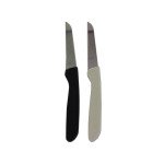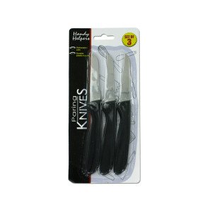 Paring knives are perfect for cleaning, peeling and slicing small fruits or vegetables. It's also the perfect tool for preparing garnishes. Each pack comes with 3 knives with either black handles or off-white handles. Set is packaged on a blister card with hanging hole. Knives measure 6 1/2" long.