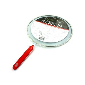 An ideal tool for keeping the stove clean, this mesh splatter screen can be placed over pots and pans in which anything greasy is being cooked. Protects against grease as well as splashes and other messes that cooking might make. Can also be used for draining liquid from pots and pans; convenient size makes this splatter screen ideal for any number of pots and pans in the kitchen. Screen measure 15" long from end to end with a 9" screen area.
