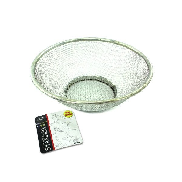A cook can never have too many strainers in the kitchen and this strainer is an ideal compliment to any kitchen job. This strainer can be used for rinsing berries, sifting dry goods and draining pasta. Dishwasher safe. Has a diameter of 7 1/2".