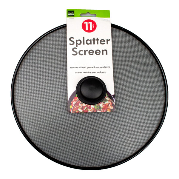 Great for preventing oily and greasy messes, this Splatter Stopper also protects hands and arms from painful splats. Stopper is made with a metal ring, metal mesh and a plastic handle. Measures approximately 11" in diameter. Comes packaged in a poly bag.,Splatter Stopper,Anti-Salpicador Metalico 11"