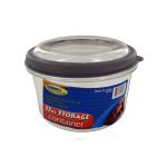 Storage container is transparent with a matching lid. Easily stacks for convenient storage made easy. Lid snaps on air tight and seals food fresh. Comes packaged loose with an artwork label. Measures 3 3/4" tall and 5 3/4" in diameter.