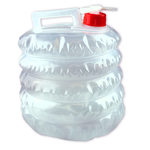 Ideal for traveling, emergency situations and camping trips, this Collapsible Water Carrier can hold up to 5 quarts of water and collapses for compact storage. Just fill with water and turn nozzle off or on when ready to use. When not filled, the water carrier can fold down to easily fit in trunks or on shelves. Comes packaged in a poly bag with header card.,5 qt. Collapsible Water Carrier,Porta Agua