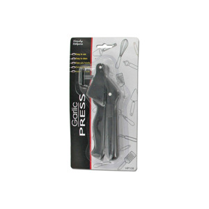 This garlic press is easy to use, easy to clean and has an easy grip handle making it a kitchen essential! Press is made out of plastic and comes with a cleaner to help keeps handle odor free. Comes packaged on a blister card with hanging hole. Measures 6 3/4" long.
