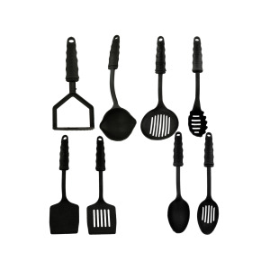 8 assorted utensil styles in each lot. Assorted colors: black, blue, green. An equal number of each style per case. Hang tag on each utensil for display.