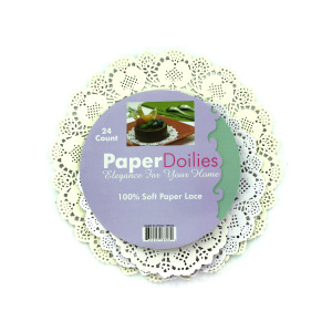 This set of soft paper lace doilies are great for parties, banquets and more. These soft paper lace doilies come in three assorted sizes: small, medium and large. Each pack comes with 24 doilies. Comes packaged in hanging poly bag. Measurements: 5 1/4" small, 8 1/4" medium and 10 1/2" large.