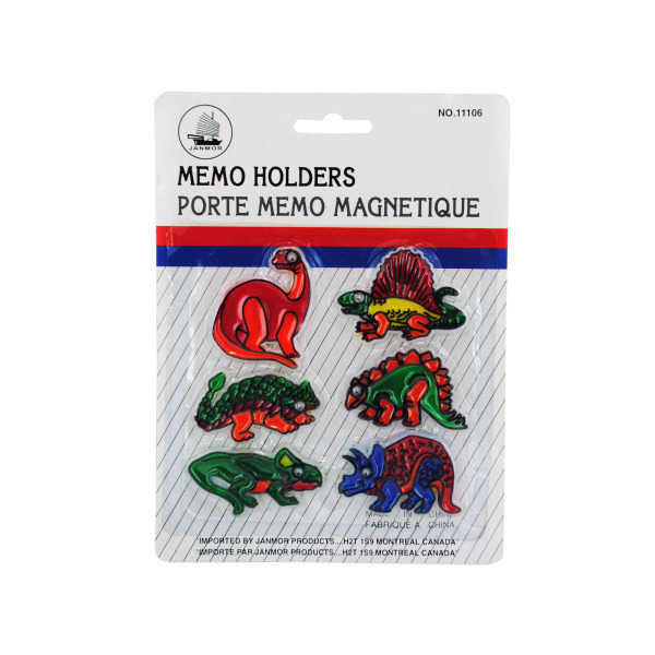 Dinosaur magnets can be used to hold memos and to show off artwork or report cards. Each pack comes with 6 dinosaur magnets with googly eyes. Comes packaged on a blister card with hanging hole.