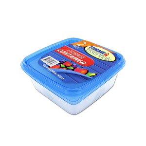 Square storage containers are ideal for leftovers, lunch packs, potlucks and more. Seals tight to keep food fresh. Each set comes with 2 transparent plastic containers with colored lids. Lid colors vary and can include: orange, pink, light blue and bright green. Comes packaged in shrink wrap with artwork label. Measures 5 1/4" x 5 1/4" and is 2" deep.