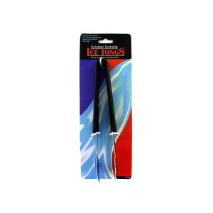 Ice tongs are great for parties, bars and buffet style gatherings. Tongs have serrated edges so ice doesn't slip away. Be your own bartender! Tongs have a sturdy plastic handle to keep hands from getting cold. Item is packaged on a tie card with hanging hole. Each tong measures approximately 8 1/4".