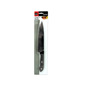 The chef's knife is a kitchen essential when it comes to chopping vegetables, finely mincing herbs or easily slicing meat and poultry. Each knife has an ergonomic handle and is dishwasher safe. Comes packaged on a blister card with hanging hole. Measures 11 1/2" long with blade measuring 6 1/2".