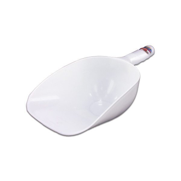 Great for flour, sugar, coffee, grains and more, this Jumbo Kitchen Scoop has notches inside marking cup amounts ranging from 1/2 cup to 2 cups, a flat bottom for even measuring and an ergonomically designed handle for a comfortable grip. Measures approximately 11 3/4" long with a 3 3/4" scoop opening. Comes loose.,Jumbo Kitchen Scoop,Pala Plastica Jumbo