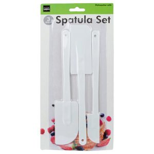 Perfect for mixing and frosting, this 3-piece Spatula Set comes with 3 different sized spatulas - small, medium and large. Measurements: 9" small, 9 1/4" medium and 9 1/2" large. Comes packaged in a blister pack.,Spatula Set,Set De 3 Espatulas