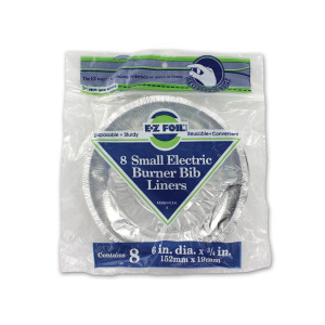Burner liners are disposable, sturdy, reusable and convenient. Each packaged contains 8 burners. Comes packaged in a resealable bag. Burners measure 6" in diameter.