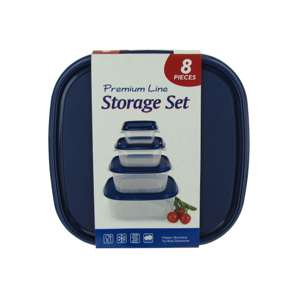 This square storage set is an ideal addition to a refrigerator or pantry. Use them to store freezer items, leftovers or dry goods in the pantry. Set of four includes four bowl and four lids; bowl sizes include 5 ounces, 14 ounces, 29 ounces and 63 ounces. Bowls and lids are freezer, microwave and top-rack dishwasher safe.