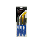 This set of paring knives is ideal for skinning fruit and slicing vegetables. Knives have a plastic handle with a stainless steel blade. A great addition to your culinary arsenal. Set comes with 3 knives. Comes packaged in a hanging clam shell. Knives measure 3 1/2".