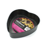 Bake a cheesecake in this for a loved one and you're assured many hugs and kisses. This heart-shaped pan is asn ideal addition to any "baked with love" kitchen. Springform ensures that cheesecakes, tarts and other items come out cleanly. Non-stick coating over carbon steel ensures easy clean-up and a durable finish. Measures 9 1/2" in diameter and 2 1/2" deep.