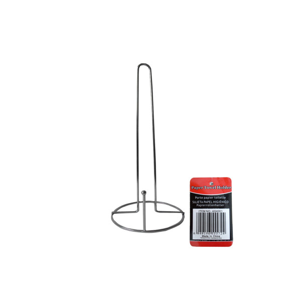 This attractive paper towel holder will be at home in any decor. Base measures 6" in diameter, while the holder itself is 11" high.