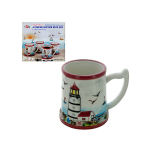4 Piece Light House Ceramic Mug Set