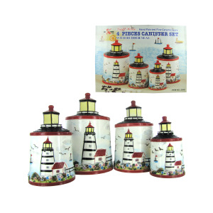 4 Piece Light House Ceramic Canister
