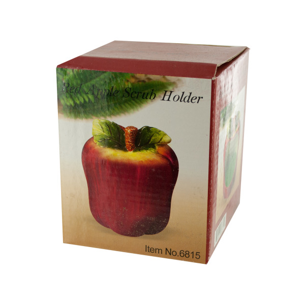 Add some country appeal to your kitchen by storing scrubbers in this Red Apple Scrub Holder. It has a leaf and stem knob on top for easy moving. Includes one scrub pad. Comes packaged in an individual box.
