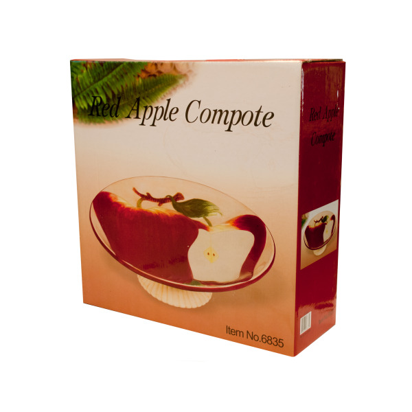 Add some country style to the table with this pretty, hand-painted Red Apple Footed Serving Dish. Perfect for serving fruits, desserts, baked goods, appetizers and more. Made of strong ceramic with a textured top and base. Microwave and dishwasher safe. Comes packaged in an individual box.