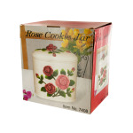 Store cookies in country garden style with this pretty Rose Cookie Jar. Decorative ceramic jar has space for dozens of cookies and a rose-topped lid to seal in freshness. Comes packaged in an individual box.