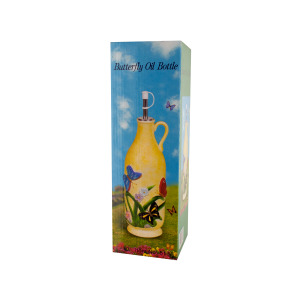 Add some pretty garden appeal to your kitchen with this useful Butterfly Oil Bottle. Pour cooking oils into the bottle, seal it with the corked pourer and enjoy drizzling oils in the perfect amount. Attractive bottle is made of strong, white ceramic painted with colorful details and clear-glazed. Bottle without pourer is microwave and dishwasher safe. Comes packaged in an individual box.