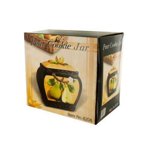 Store cookies in country garden style with this attractive Pear Cookie Jar. Decorative ceramic jar has space for dozens of cookies and a fruit-topped lid to seal in freshness. Comes packaged in an individual box.