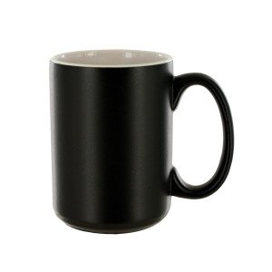Perfect for large servings of hot teas and coffees, this handsome 15-Ounce Black Matte Mug is great for everyday use. Made of strong white ceramic with matte black exterior glaze and glossy white interior glaze for a stunning, classy appearance. Measures approximately 4.5" x 5" x 3.25". Comes loose with a UPC sticker.
