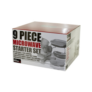 Prepare meals easier, simpler and more conveniently with this 9-piece Microwave Cooking Starter Set. Poach eggs, cook vegetables and other foods quickly and easily. Set includes: two egg poachers, two 4.25" saucepans, one 9.5" tray stand, one 8.5" potato baker, one double egg poacher, one 9" bacon rack and one 8.5" omelette tray. Dishwasher safe. Comes packaged in an individual box.