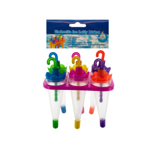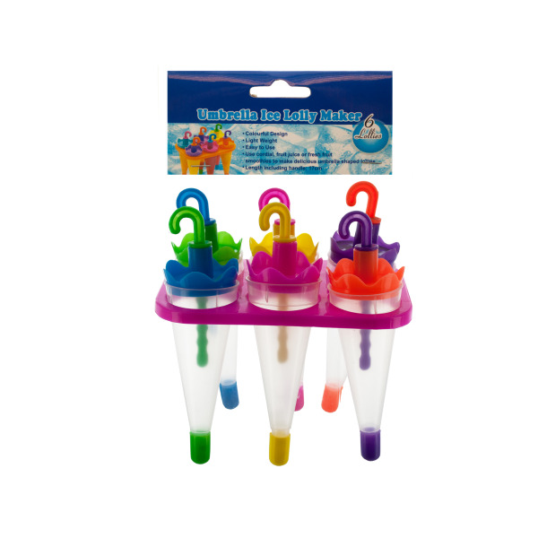 Kids can create their own yummy flavors with this fun 6-piece Umbrella Popsicle Mold Set featuring umbrella-shaped molds with crook handles. Colorful freezer pop molds make a delicious spring and summer treat. Also great for parties and picnics. Each mold can make an approximately 5" treat. Handles are 2". Comes packaged in a poly bag with a header card.