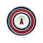 Perfect for parties and everyday use, this MLB Licensed Los Angeles Angels of Anaheim Chip & Dip features a round white plastic dish with blue and red stripes and a 5.5" center dip section with the Angels logo. Measures approximately 14" in diameter. Dishwasher safe. Comes loose.