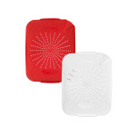 Peel, wash and prepare food with this convenient Flat Sink Colander featuring a durable plastic rectangular colander with drainage holes to let water flow freely while keeping food intact, bottom feet for elevation and a corner drain spout for excess water. Useful design catches peelings and waste for easy transport to the trash or compost. Dishwasher safe. Measures approximately 13.25" x 1.25" x 10.5". Comes in assorted colors. Comes packaged with a hanging panel.,Flat Sink Colander,