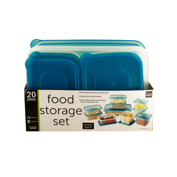 Save space and seal in freshness with this 20-piece Nesting Food Storage Set featuring square and rectangular containers in various sizes with snap-on lids. Pack snacks, fruit, lunches and much more. Set includes: 5 x 30-ounce containers with lids, 4 x 33-ounce containers with lids and 1 x 123-ounce container with lid. Microwave, freezer and dishwasher safe. Comes packaged in an individual shrink wrapped box.