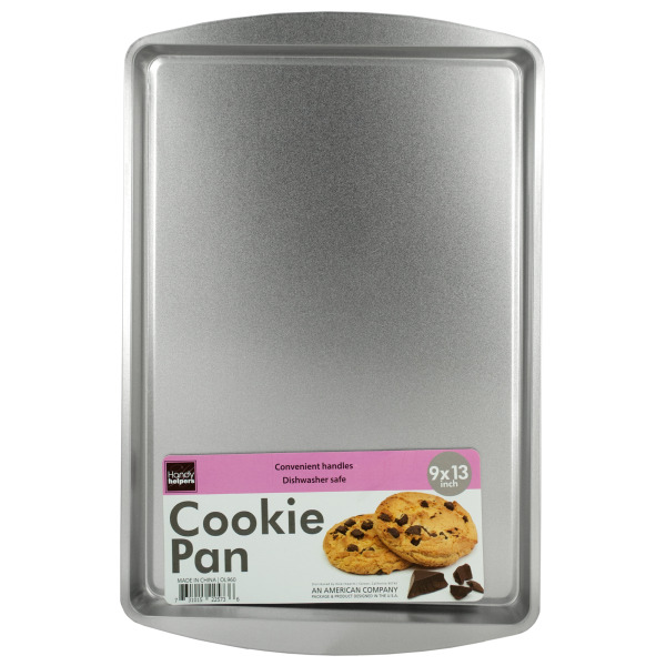 Easily bake cookies, scones, biscuits and more with this Cookie Sheet Pan featuring a durable metal pan with convenient handles. Interior measures approximately 13.25" x 9.25". Whole pan measures approximately 15" x 9.75" x 0.75" (including handles). Dishwasher safe. Comes loose.,Cookie Sheet Pan,