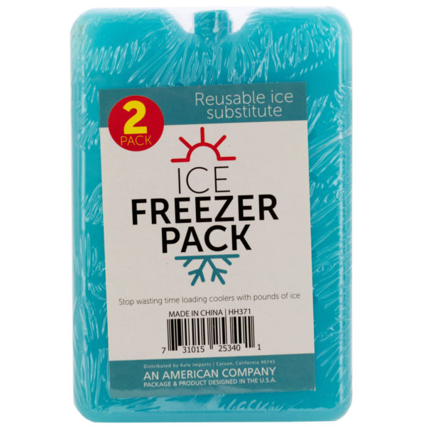 Keep food and drinks cold on the go with this 2-piece Reusable Ice Freezer Pack Set featuring small, liquid-filled plastic packs that work great as ice substitutes. Freeze the packs and they're ready to use. Stop wasting time loading coolers with pounds of ice! Compact size fits easily in lunch bags and coolers. Packs measure approximately 4.375" x 6.5". Comes in assorted colors. Comes packaged in shrink-wrapped.,Reusable Ice Freezer Pack Set,