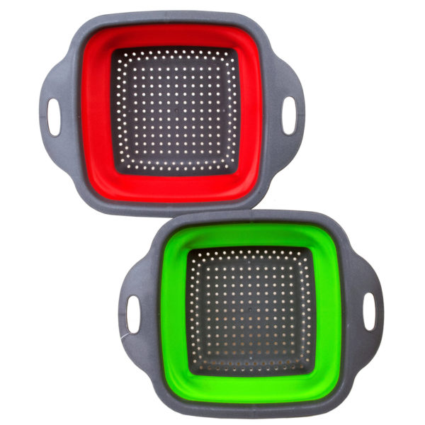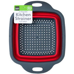 Handy Helpers Collapsible Kitchen Strainer is excellent for pasta, vegetables, and grains. Works for draining most foods like spaghetti, pasta, potatoes, broccoli, green beans, carrots, spinach, and other veggies. User these strainers to rinse your salad leaves, fruits, and fresh vegetables. Strainers are foldable, so they do not take up room in your kitchen cupboards. The space saver collapsible colander is approximately 7.25" x 9.5" x 3" in size. Ideal for your kitchen essentials. Comes with tag and assorted colors: Red and Lime Green.,Easy Storage Folding Kitchen Strainer,