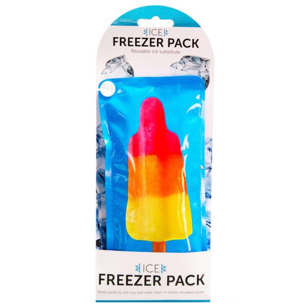 The Popsicle Design Ice Freezer Pack helps keep your drinks and snacks cold inside your insulated coolers. The assorted icecream graphic print provides a summer vibe while keeping your soda and food refreshingly chilled. Works perfectly with any soft-sided, foam, or plastic insulated coolers. Great to place inside your kid's lunchboxes to keep their drink pouches and cheese sticks cool. Take these freezer packs while hiking or on a day at the beach. Comes in assorted ice cream prints. Comes packaged on an open hanging panel. Measures approximately 8.2" x 3.7" x 0.5". ,Asst. Popsicle Theme Ice Freezer Pack,