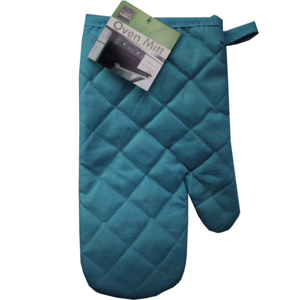 Are you in need of a new oven mitt, or just moved out and need to buy your first oven mitt ever? You've come to the right place and found this beautiful traditional-style quilted blue oven mitt. The mitt has a section for your four long fingers, and a thumb section to help your grip onto objects easily. Great for helping you handle hot or cold pots, pans, dishes, baking sheets, and more! The adorable blue mitt features a loop for easy hanging storage and comes packaged loosely with a tag attached. It's made of cotton and is designed to fit most hand sizes! ,Oven Mitt with Hanging Loop,