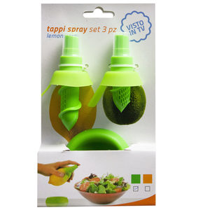 This three-piece Citrus Sprayer is exactly what you need to add some zest to any meal, drink, or food preparation. Can even be used as a hydrator for growing plants or other citrusy fruits! All you have to do is insert and twist the sprayer nozzle into your orange, lemon, lime, etc. of choice and spray the liquid contents of the inside away! Three orange-colored sprayers come packaged displayed on a hanging card. ,Citrus Sprayer,