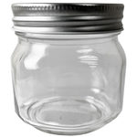 This 8-Ounce Mason Jar Glass Container with a Metal Lid is perfect for an aesthetic morning iced coffee, adult beverage, a water cup at restaurants, as a storage container for tea, coffee grounds, salt, sugar, or even to use as a planter pot for your beloved plants! It's wide, a little boxy in shape, super cute and ready to use! The lid is a silver-colored metal and the jar comes packaged with a sticker tag at the bottom. Measures 3"x3".,8 Ounce Glass Container w/Lid,