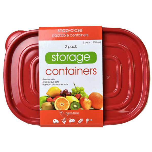 This set of 2 BPA-Free Plastic Food Containers is perfect for meal prepping, storing leftovers, taking to family dinners, picnics, and more! The 2-section style helps keep food and ingredients separated. The rectangular containers stack together and are great for keeping your kitchen organized. There are 2 containers per pack with a clear body and red snap-close lid. The set comes packaged together with a wrap label. Containers measure approximately 9.84" x 2.6" x 6.5",2 Pack Plastic Food Container with 2 Sections,