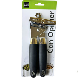 The manual can opener is a kitchen must-have! Use to open canned soups, vegetables, and fruits. The large ergonomic plastic handles are easy to hold. Even if you have an electric can opener, this makes a great emergency backup! Also great to keep on hand for camping, hiking, and emergencies. Comes packaged on a hanging tie card.,Deluxe Manual Can Opener,