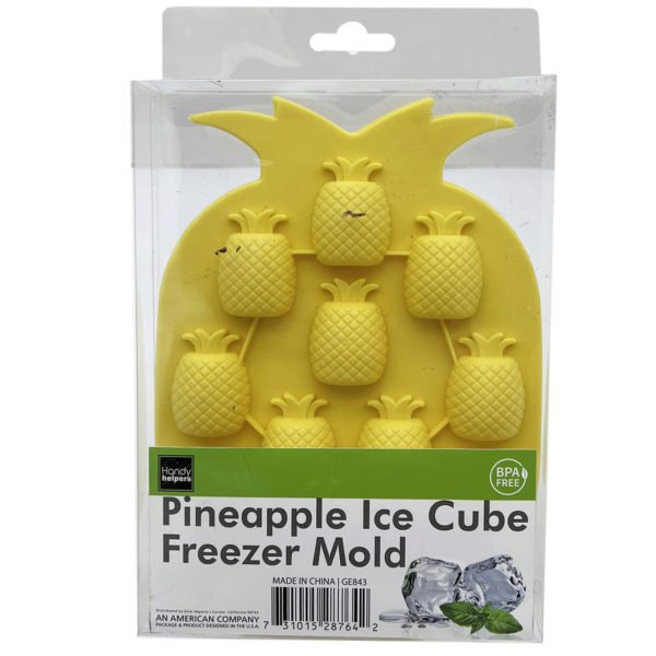 Bring the tropical vibes to your homemade drinks with the Pineapple Ice Cube Freezer Mold. This BPA-free ice tray makes 12 perfect little pineapple-shaped ice cubes. Great for luau parties, tropical drinks, or everyday summer vibes. Fill with water or fruit juice, fill with water and when frozen the pineapple shapes will easily pop out. The tray is yellow in a pineapple shape. Measures 7.2"x5.5". Comes packaged inside a hanging window box. ,Pineapple Ice Cube Freezer Mold,