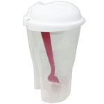 Whether you're on a health journey or like to meal prep for the work week, this To-Go Salad Container is the perfect way to stay on track! Features a clear ergonomic tumbler with a pop-on white plastic lid and red fork included. The lid holds a salad dressing dipping container. Great for salads, smoothies, yogurt parfaits, and more! The tumbler has a snap-in section to hold the included fork. Measures 7.125" tall. Comes packaged loose.,Salad To Go Container in Red,