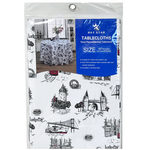 The White with Building Design PVC Tablecloth with Flannel Backing is the perfect way to protect your table from food and drink stains. Great to use when hosting party guests or for everyday protection. Made for round tables. Made with soft 100% polyester fabric that is stain and wrinkle-resistant. Features a white background with architectural sketches of castles, bridges, and buildings. The flannel backing gives it extra durability. Measures 60" round. Comes packaged and folded inside a hanging bag.,60" X 60" White with Building Design PVC Tablecloth with Flannel Backing,