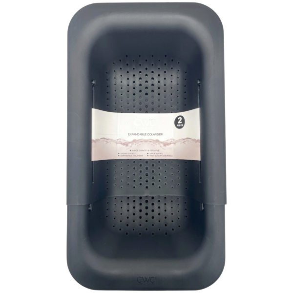 Revolutionize your kitchen experience with the Cook with Color 2 pack Over Sink Black Strainer, a versatile and efficient tool designed to simplify your food preparation and cleanup. This innovative strainer is engineered for convenience, effortlessly expanding to sit securely over your sink, ensuring quick and easy washing and draining of your ingredients. The thoughtfully designed holes are small enough to prevent food from slipping through while facilitating rapid drainage. With an adjustable size ranging from 14.2" to 19.5 inches, it accommodates various sink dimensions, making it a versatile addition to any kitchen. Boasting a 5-quart capacity, this strainer provides ample space without compromising on functionality, and its collapsible design makes it a space-saving marvel. Crafted from high-quality BPA-free PP material, it guarantees durability and safety, while being dishwasher safe and heat-resistant up to 230 Degrees. Upgrade your culinary game with this heavy-duty, multifunctional Over Sink Strainer that combines practicality, quality, and style seamlessly. ,Cook with Color 2 Pack Over Sink Stainer in Black,